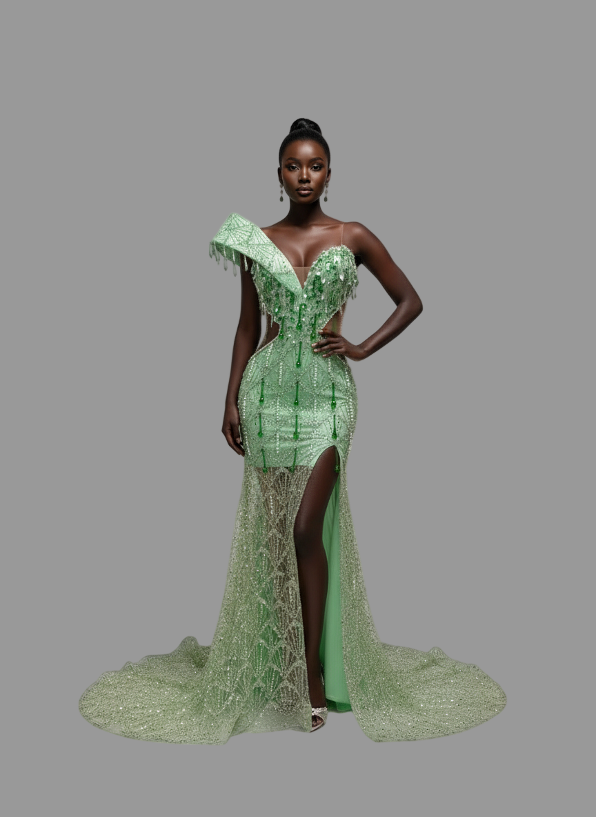 Own the room in the Majestic Aura Dress .A flawless dress designed for statement making queens who believe elegance and boldness should always go hand in hand
